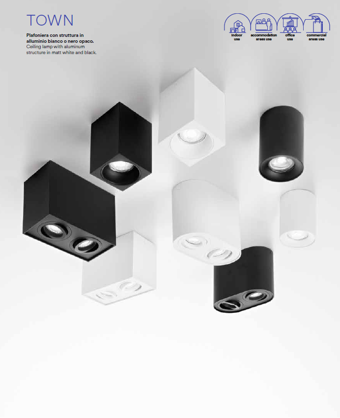 Ceiling Lamp with Aluminum Structure in Matt White and Black.