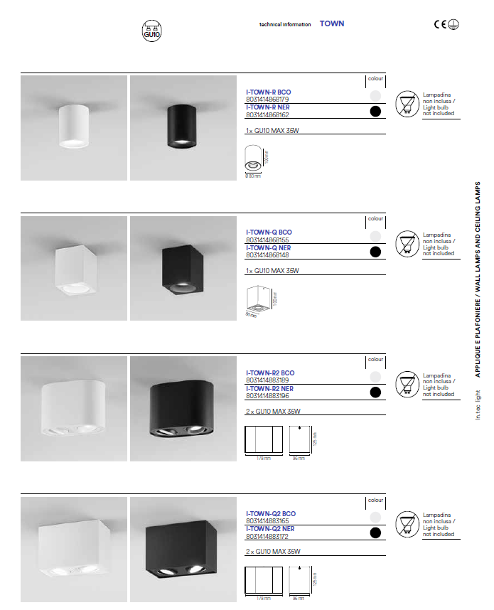 TOWN Ceiling KONE 2xGU10 ROUND BLACK