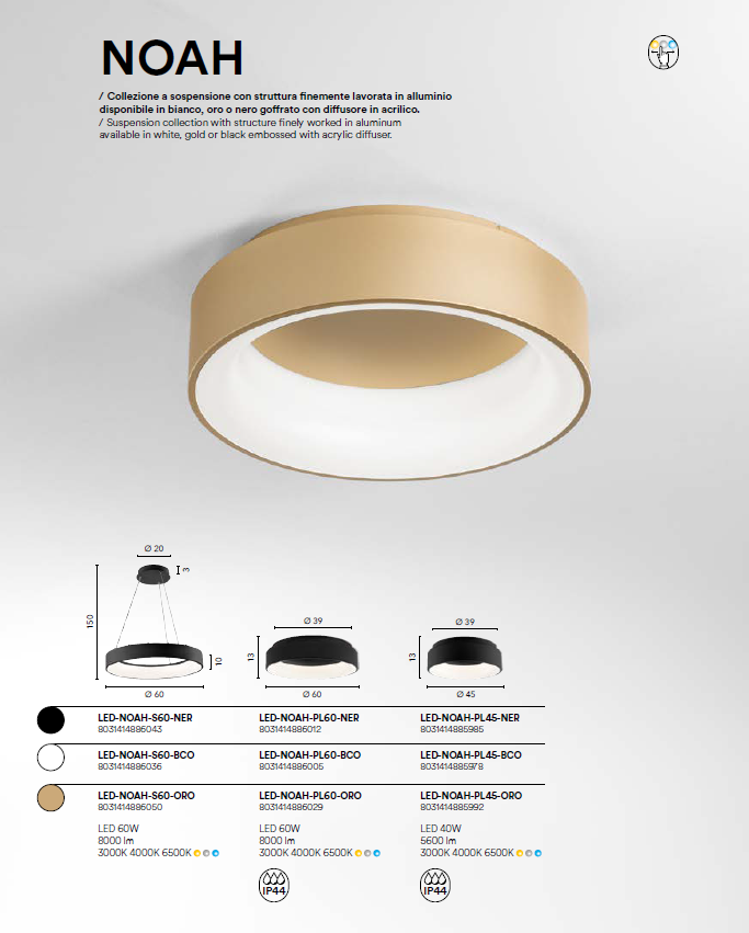 NOAH Ceiling Light Ø45cm 40w 4600lm GOLD