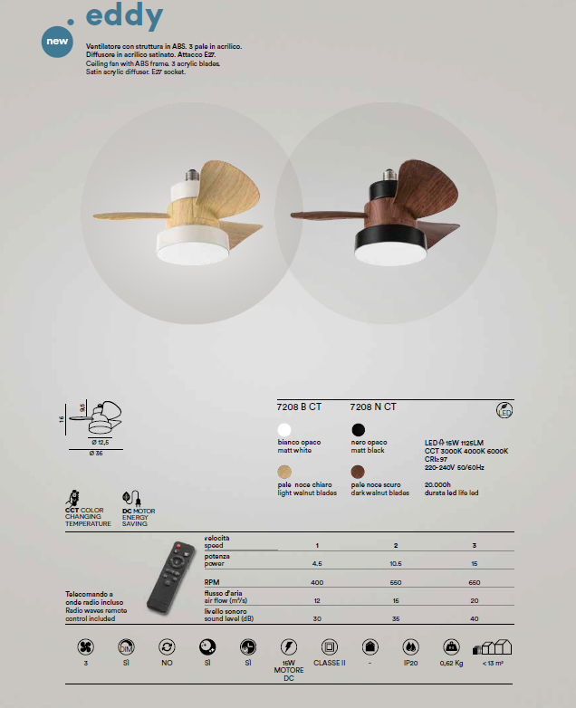 Fan EDDY 3 Blade 15w Ø36 BLACK +RC
